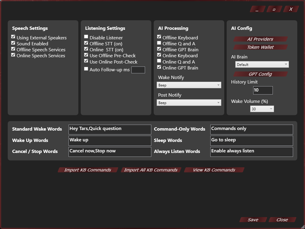 - Custom Wake Words & Keyboard Commands: Activate features with personalized voice commands.